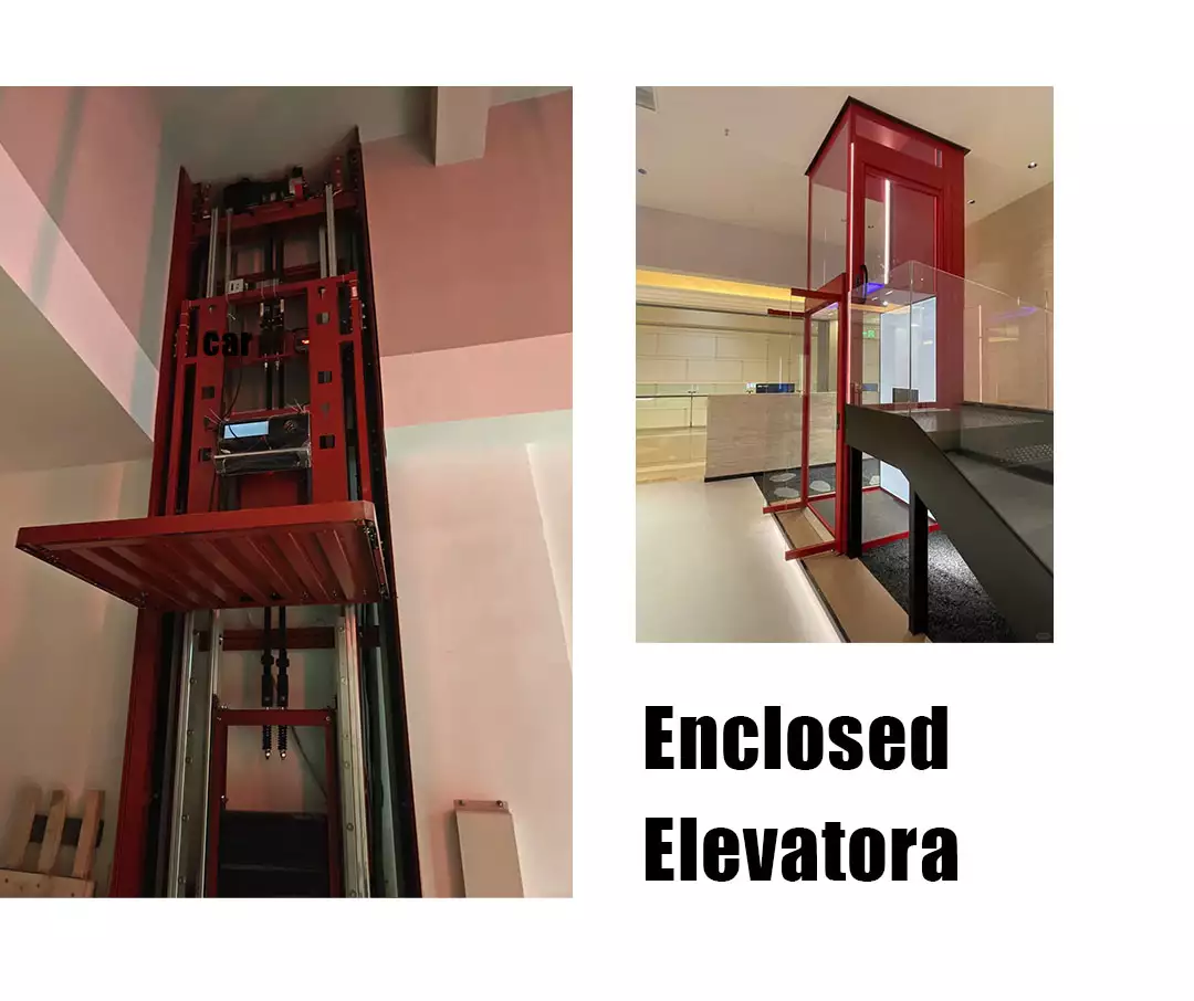 A enclosed home elevator is the most common type. It has a closed cabin inside the shaft, which makes it safer. It can serve more floors and move faster, and it can use traction, screw, or hydraulic systems. The only disadvantage is that the cost is higher than a platform elevator.